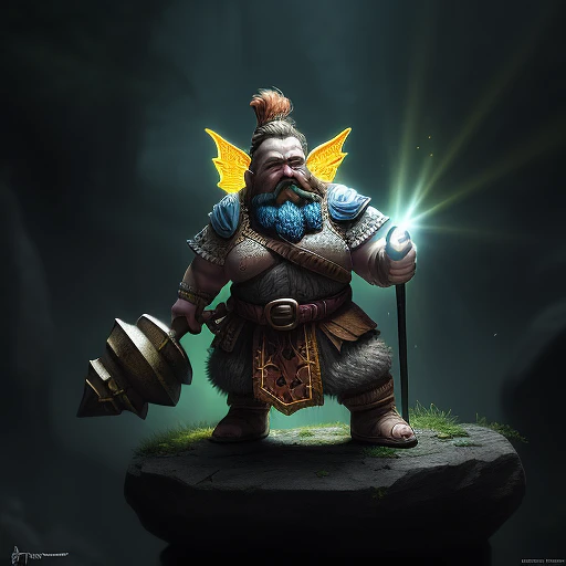 dwarf warrior, sharp focus, bright colors, clear, detailed, cinematic, dreamy glow, fantastic realism, dynamic, fairy lighting, volumetric rays, hdr. --ar 9:16