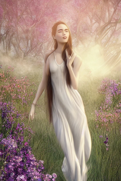 <lora:OpenJourney-LORA:1> | hyperrealistic full length portrait of gorgeous goddess | standing in field full of flowers | detailed gorgeous face | full body | white sundress| god rays | intricate | elegant | realistic | hyperrealistic | cinematic | character design | concept art | highly detailed | illustration | digital art | digital painting | nude