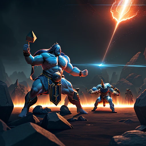 The Gods of mass in an eternal battle, masters, legendary, hyper realistic, 8k quality, nanite rendering, volumetric lighting