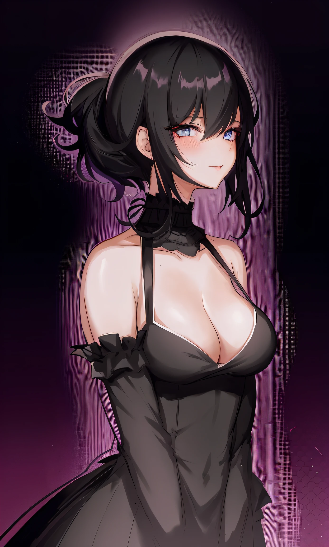 anime girl with black hair and blue eyes in a black dress, anime girl wearing a black dress, seductive anime girl, beautiful alluring anime woman, anime moe artstyle, anime woman, sultry smirk, beautiful anime woman, female anime character, noire, portrait of a female anime hero, attractive anime girl, badass anime 8 k, sexy gaze