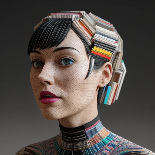 A woman made with mid-century modern collage, made of random shapes cut from fashion and science magazines and text books, of 2022, trending on instagram, by Dan Mumford and Junji Ito and Daniel Gerhartz, unreal 5, DAZ, hyperrealistic, octane render, cosplay, RPG portrait, dynamic lighting, intricate detail, summer vibrancy --ar 3:2 --v 5. 1