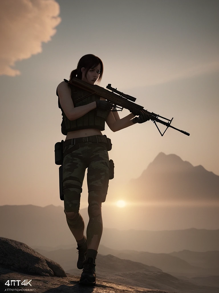 Photo of a ultra realistic AK-47, dramatic light, pale sunrise, cinematic lighting, battered, low angle, trending on artstation, 4k, hyper realistic, focused, extreme details, unreal engine 5, cinematic, masterpiece, art by studio ghibli, intricate artwork by john william turner