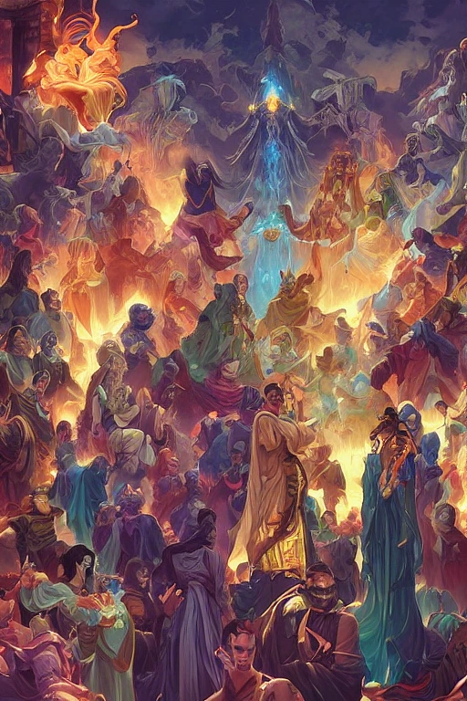 council of ascended masters by artgerm, tooth wu, dan mumford, beeple, wlop, rossdraws, james jean, marc simonetti, artstation giuseppe dangelico pino and michael garmash and rob rey and greg manchess and huang guangjian and makoto shinkai
