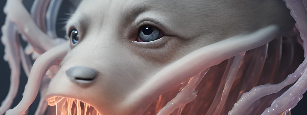 dog close-up portrait ribcagel. jellyfish phoenix head, cinematic, hyper realism, high detail, octane render, 8k