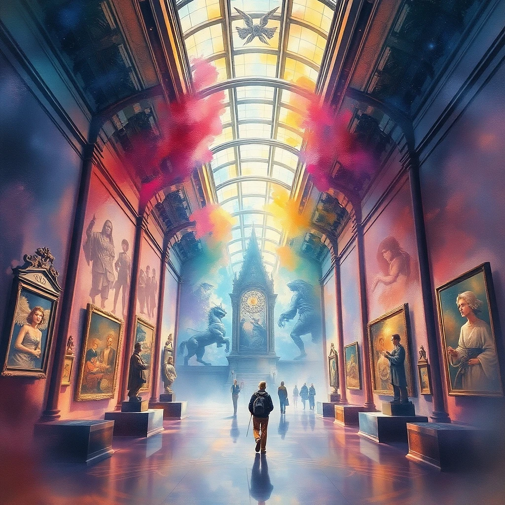 Art museum space style fantasy, Watercolor, trending on artstation, sharp focus, studio photo, intricate details, highly detailed, by greg rutkowski