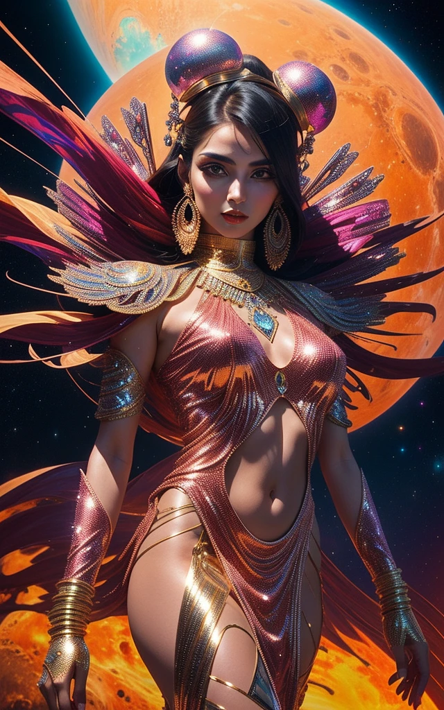 Fashion on Mars like Persian style , futuristic , using iranian elements , persian patterns for fabrics , futuristic persian ornaments , character design, infrared photography, luminogram, mokume gane, fluff, foil, furry, girih, molten, tinsel, tourmaline, spinel, danish pastel colors, 24mm, 100mm, 16k, dreamy glow, bauhaus, extraterrestrial, ultra clear, hyper detailed, fantastic realism, hyperrealism, kitsch outfit