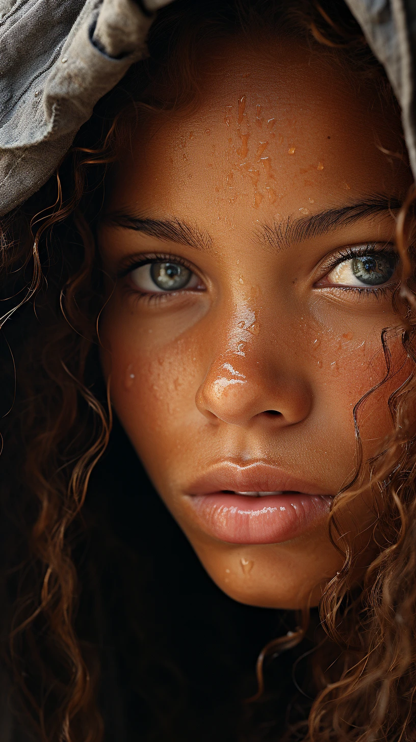 a close up of a woman with freckles on her face, albert watson, brown skin like soil, hyperrealistic teen, by Antoni Pitxot, epic music album cover, charcoal, graham humphreys, timid and vulnerable expression, a beautiful teen-aged girl, smooth shaded --v 5. 2 --ar 9:16 --s 750