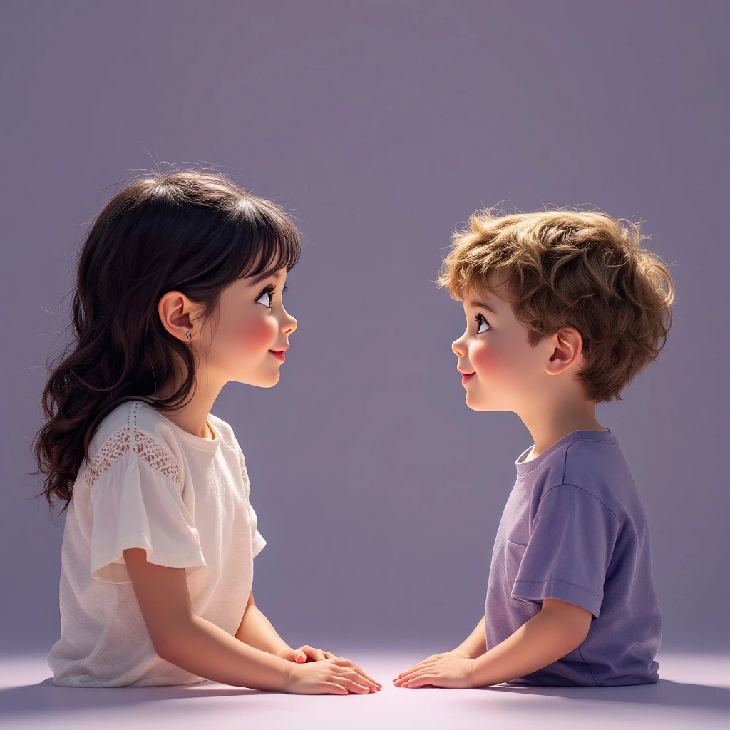 a 12yo girl and boy pretty face looking at each other