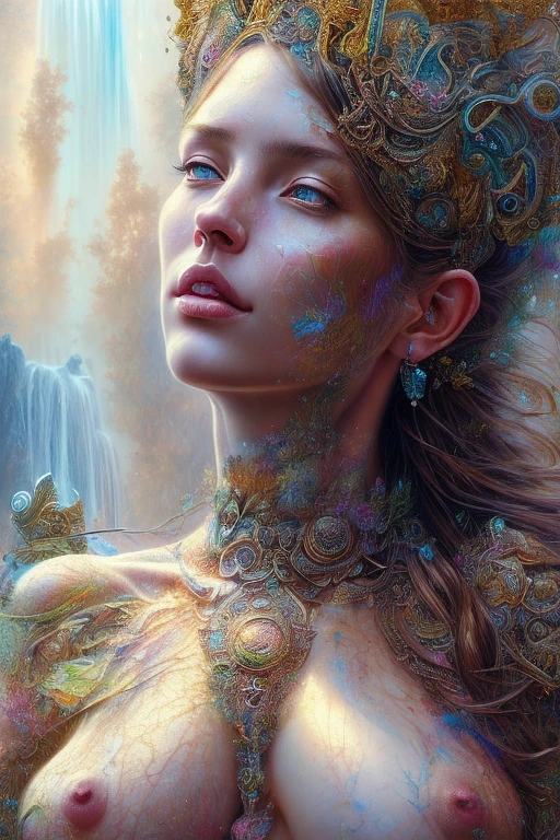 full-length portrait of gorgeous goddess| (standing in waterfall) | detailed face| (detailed body) | stunning environment| intricate| breathtaking| hyperrealistic| realistic| vibrant| cinematic| concept art| highly detailed| digital art| by Carne Griffiths and Mark Keathley and Albert Lynch