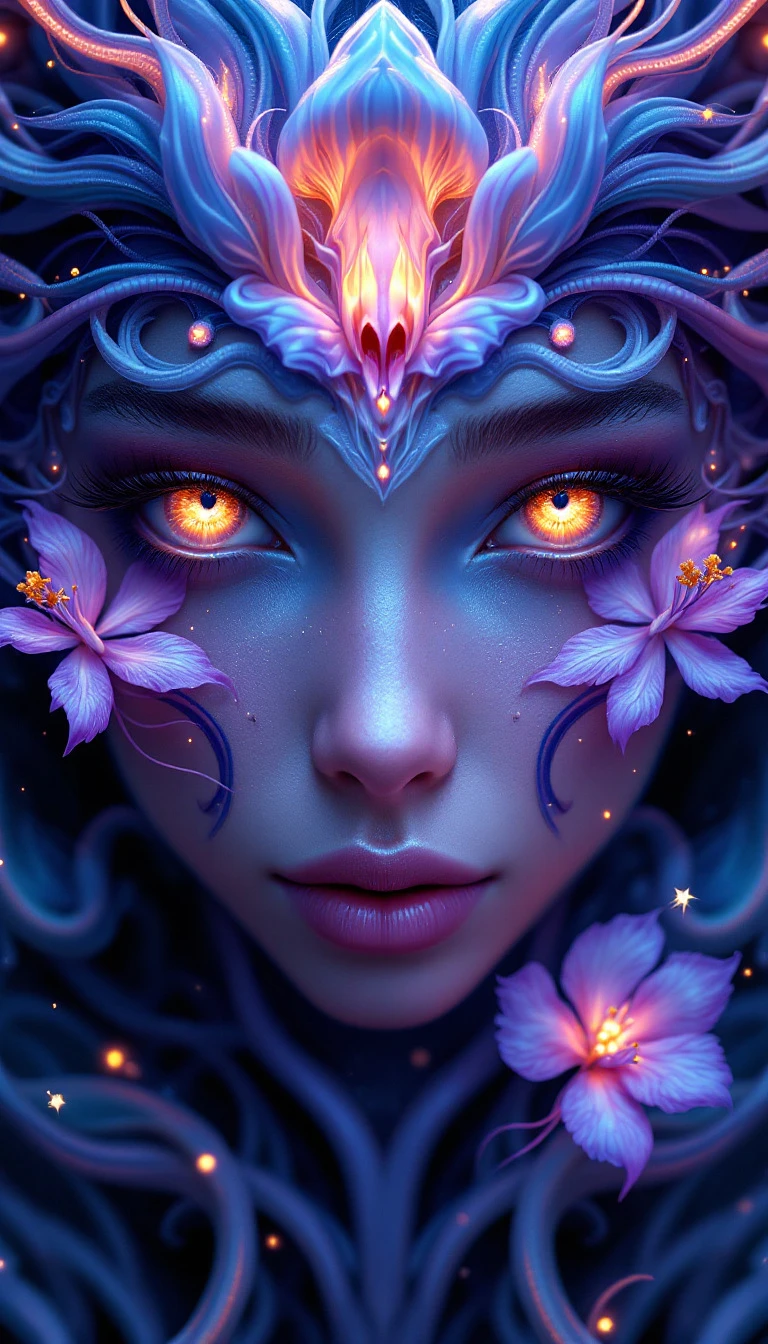 Goddess close-up portrait ribcagel. jellyfish phoenix head, nautilus, orchid, skull, betta fish, bioluminiscent creatures, intricate artwork . octane render, trending on artstation, t symmetrical artwork. cinematic, hyper realism, high detail, octane render, 8k