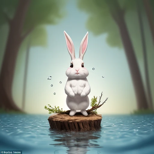 a little rabbit named Sami, stuck on a branch in water. Sami has tried to jump across the water but ended up getting tangled