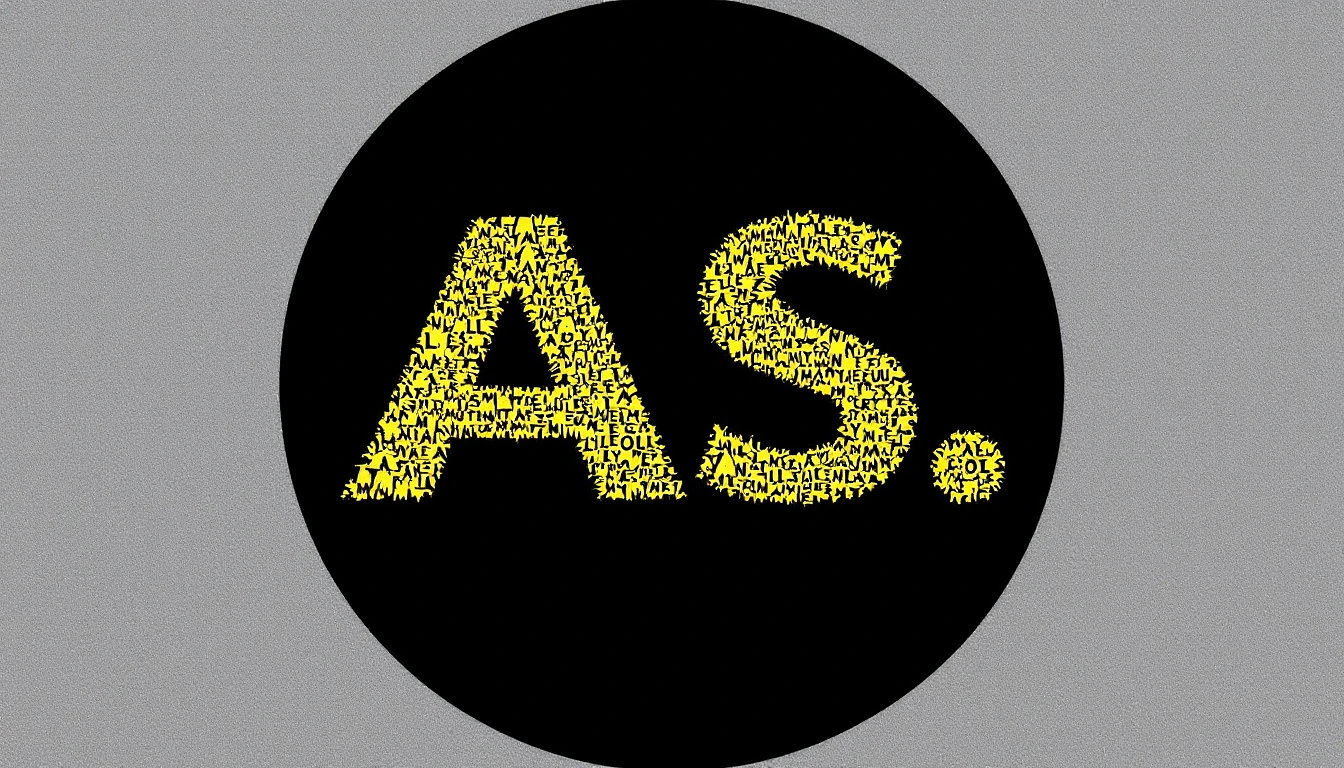 YELLOW LETTERS A. S. ARE EVENLY DISTRIBUTED IN A BLACK CIRCLE.