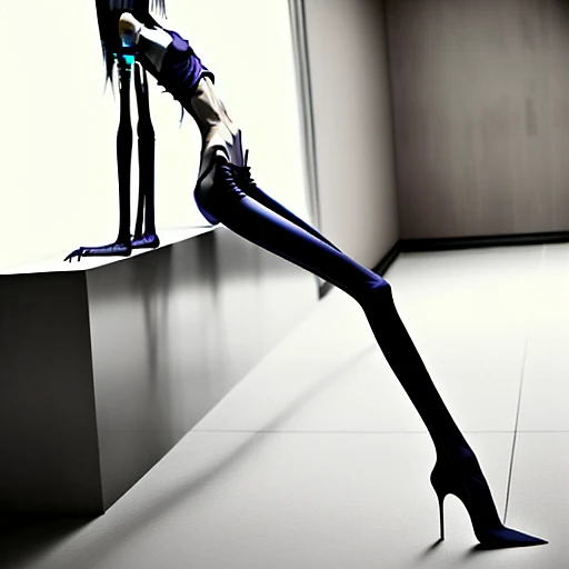 extreme skinny slender anorexic girl very skinny slender girl, with long curved claws, skinny legs in high heels , lying position