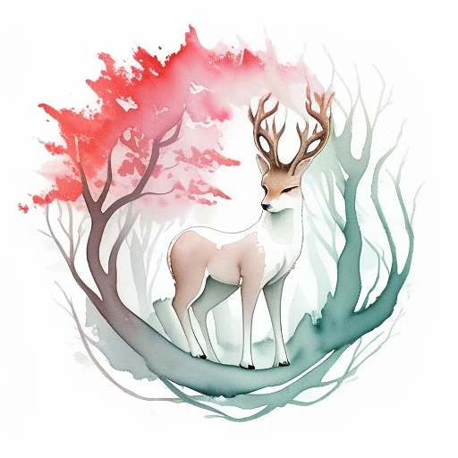 Woodland animal depicted in a minimalist style, watercolor and pastel medium blend softly, no background elements, smooth, flowing appearance, evoking warmth, dreamy, mystical ambiance, natural beauty highlighted, ideal for tattoo design, ultra fine, volumetric, dreamlike quality.