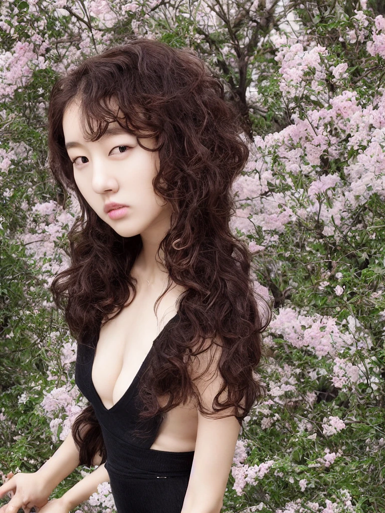 (1 girl, whole body: 1.4) , beautiful Korean woman, K-pop idol, (curly long hair) , (wearing exposed black Les tight skirt: 1.4) , (big breasts) , symmetrical eyes, (agyo sal: 1) , (eyelashes: 1.1) , (realism: 1.4) , 8k, super high resolution, super realism, (dramatic lighting) , photography, beautiful and meticulous face, beautiful and detailed eyes, (masterpiece) , High detail color photos, professional photos, (realistic, photo realistic: 1.5) , (highest quality) , (best shadow) , ultra-high resolution, physics based rendering, photos, realism, high contrast, 8k high-definition high-definition details realistic, detailed, best quality, Nikon d850 film, cinestill 800