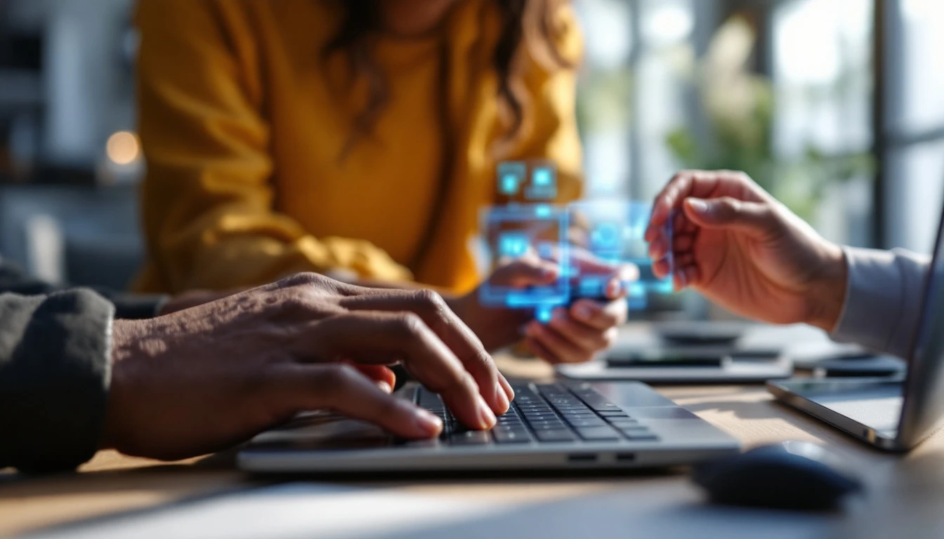 `/imagine prompt: Tech startup team presenting new app, focus on hands: African American developer's hands (visible knuckle wrinkles, short trimmed nails) typing on mechanical keyboard, East Asian designer's hands (smooth dorsal surface, single age spot) gesturing at holographic interface, Caucasian CEO's hands (visible tendon movement) holding prototype device, modern office with floor-to-ceiling windows, sunlight minimizing skin texture noise --hand_anatomy v3 --no alien_skin, claw_fingers --detail_boost 4`