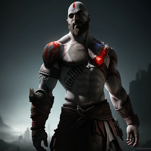 Kratos from God of War (2018) as a cyborg :: Cyberpunk Adam Smasher, volumetric fog, perfect composition, insanely detailed, 4k, HDR --no blur --no blurry --v 4