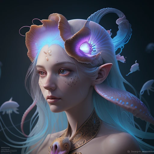 Goddess close-up portrait ribcagel. jellyfish phoenix head, nautilus, orchid, skull, betta fish, bioluminiscent creatures, intricate artwork . octane render, trending on artstation, t symmetrical artwork. cinematic, hyper realism, high detail, octane render, 8k