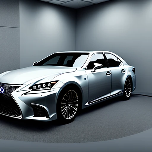 photo of a lexus ls f , black in colour, black wheels, showroom setting, showroom lights, pbr materials, reflections, super realism, 8k, unreal engine 5, super optimization, ultra settings
