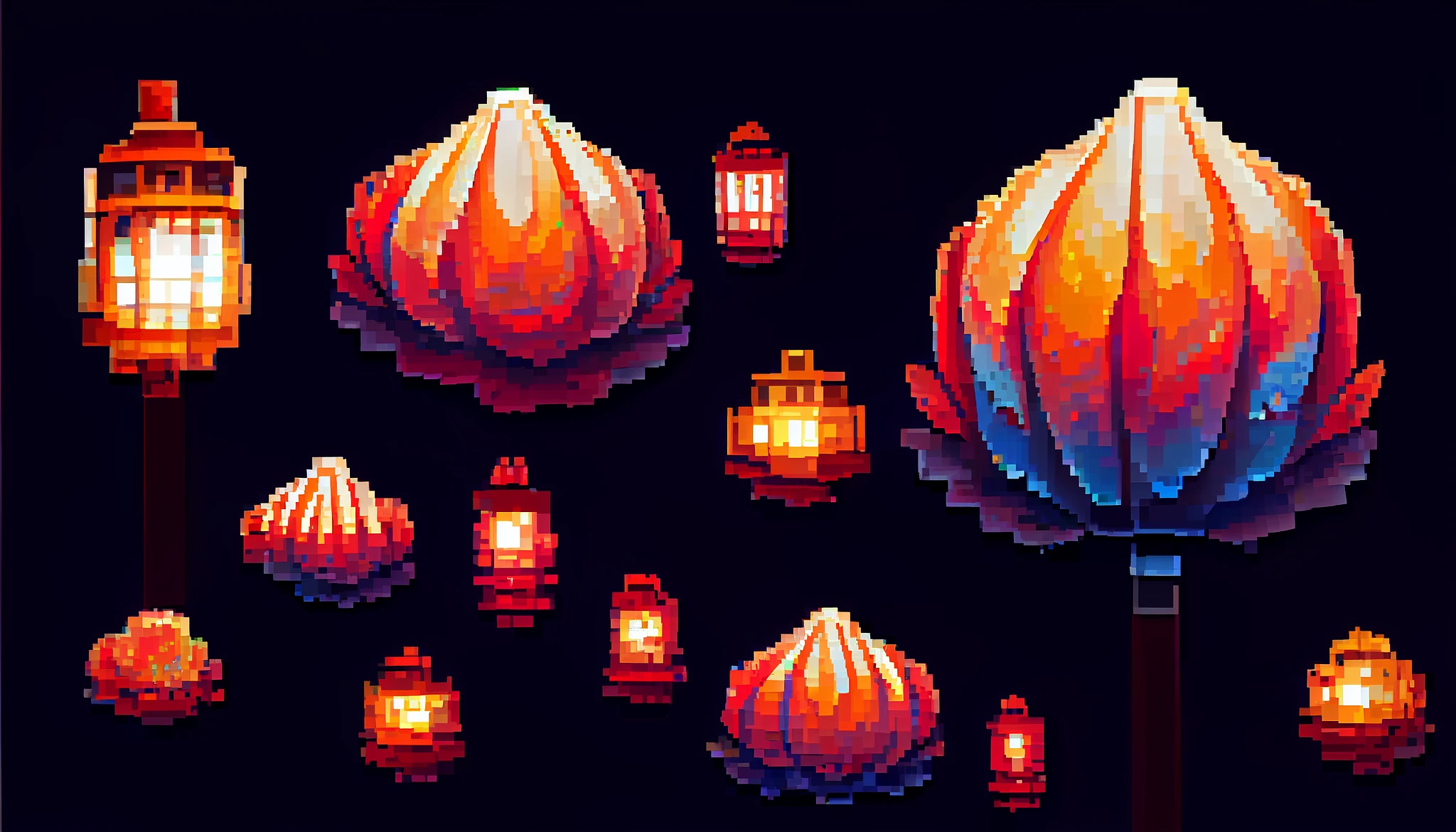 8 bit pixel art of a chinese lantern festival, bloom lighting --ar 16:9 --upbeta --q 2