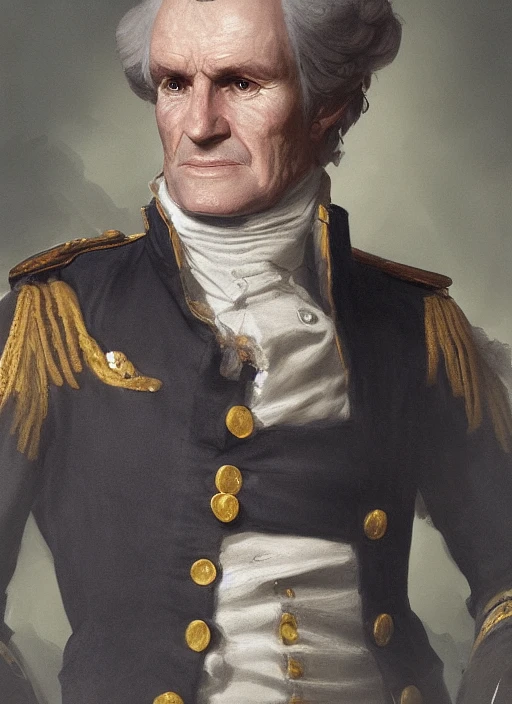 portrait of a rugged 18th century Naval captain James Cook in a HMS naval uniform jacket, victorian, concept art, detailed face, fantasy, close up face, highly detailed, cinematic lighting, digital art painting by greg rutkowski