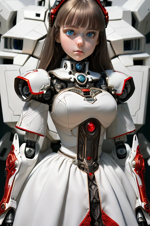 (masterpiece:1.4, best quality) , (intricate details) , unity 8k wallpaper, ultra detailed, intricate details, super complex details, ((2people) ), (girl_standing_beside_robot:1.2) , girl, (perfect detailed face, detailed eyes, white dress) , BREAK robot, (giant mecha, red and black armor, blue eyes, holding rifle) , starry sky, skyline, <lora:Mecha:1> , <lora:Add More Details:0.8>