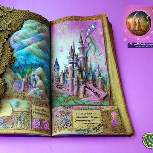 a wonderful magic pop-up world coming to life from a magic weathered old fairytales book, extremely high intricate detail, pastel colours, magic, enchantment, volumetric light mdjrny-v4 style