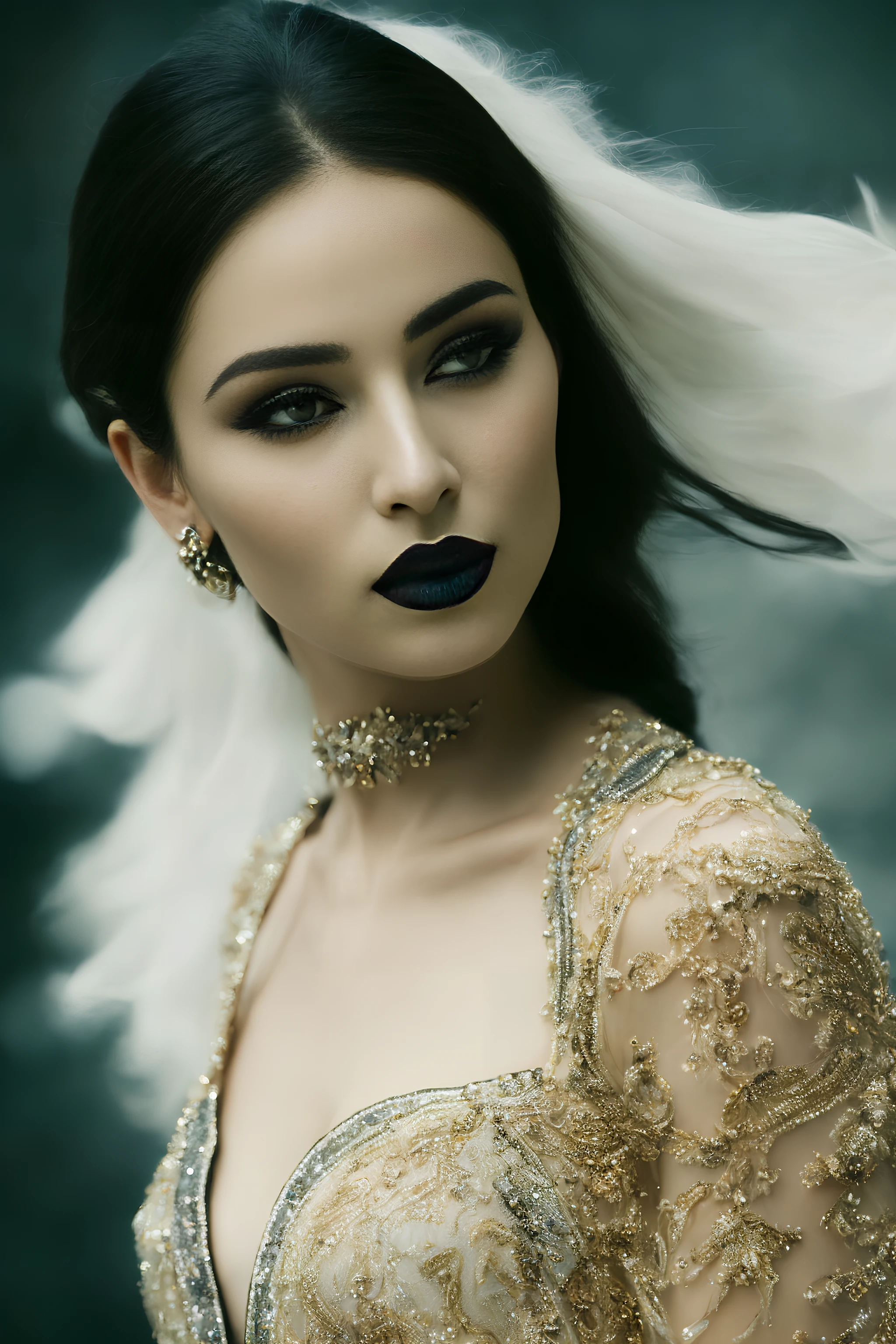(((mdjrny-v4 style) )), Portrait of a ((beautiful) ) goddess, ((white skin) ), (goddess of Dark) , (((moon) )) ((((black short hair) ))), ((((gothic) ))), standing in front of the moon, (((flying) )) and holding ((black magic wand) ), dark fantasy, fantasy, ((full body) ) volumetric lightning, HDR, 8K, 4K, (ultra realistic) , 80mm, (photo-realistic:1.5) , (RAW photo, 8k uhd, film grain) , high quality, highres, sharp focus, extremely detailed, (high detailed skin:1.2) , uhd, dslr, soft lighting, high quality, film grain, Fujifilm XT3
