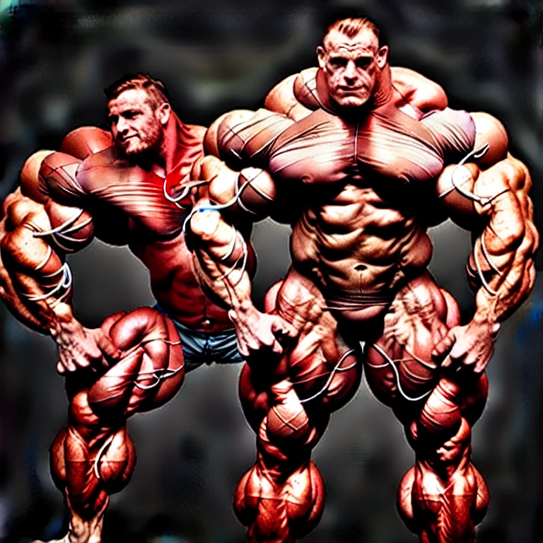 photo of an enormous muscular monster with massive pecs and biceps breaking a building while posing his vascular muscles, pecs bulging with veins, biceps bulging, bulk psysique, 4k, extreme quality, ambient lighting