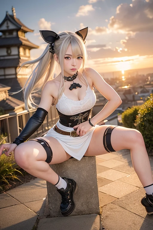game 2d art, image of a young woman with light gray hair, 16 years old, green eyes, white tank top, steampunk clothes, anime, anime anime anime anime anime, dynamic pose, ultra-detailed, white background, HD, design art by Hideo Minaba, Yuya Nagai, Ryoji Ohara, Ryota Murayama and Hitomi Yoshimura, granblue fantasy