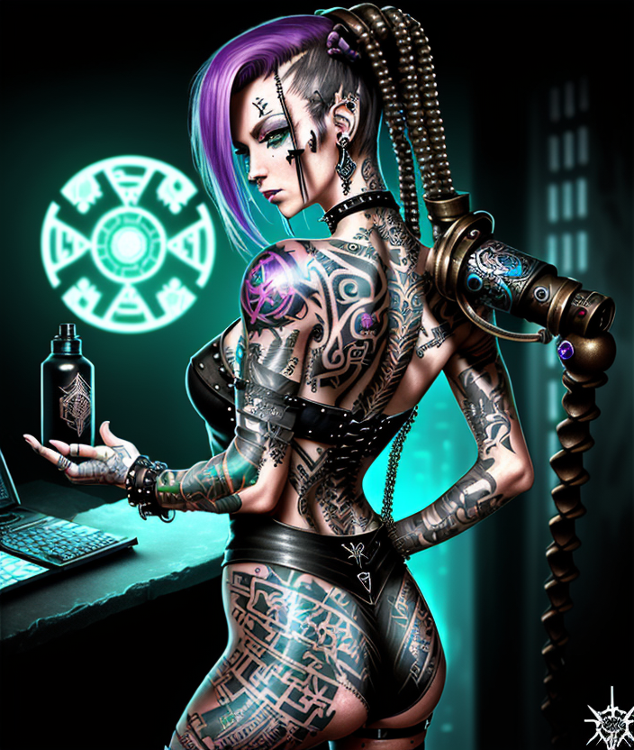 DreamShaper prompt: cyperpunk, masterpice of tattoo, kopfgeldjäger, fa