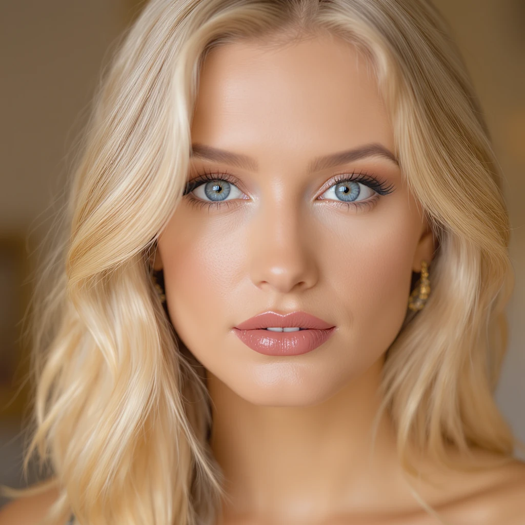 a blonde woman with blue eyes, in the style of natural, timeless beauty, 32k uhd, blink-and-you-miss-it detail, voigtlander bessa r2m, light orange and gray, captivating lighting --ar 9:16 --stylize 750 --v 6