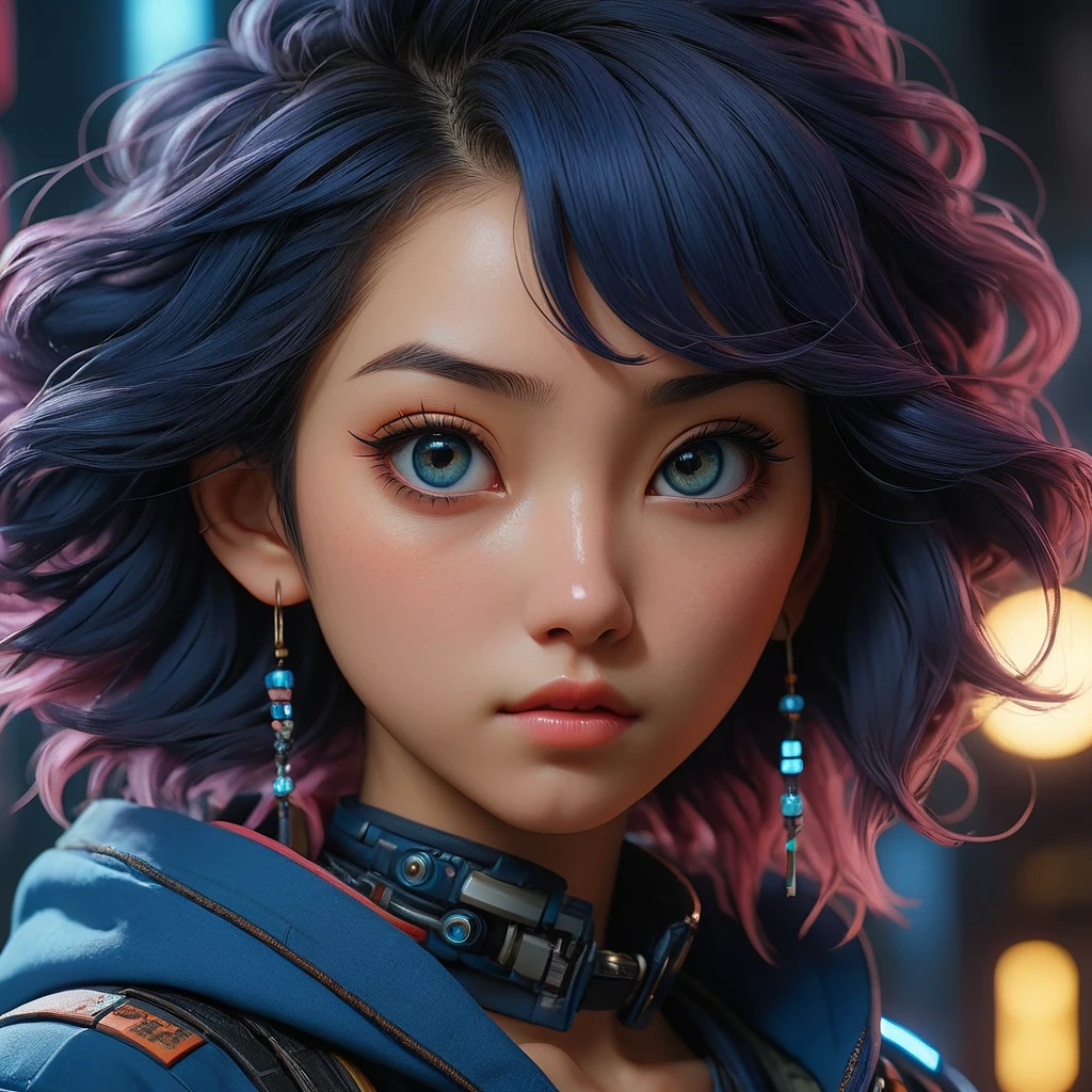 Art by Katsushika Hokusai, a portrait of pretty cyberpunk girl, luminescence, ultrearalistic, hyperdetailed, soft lighting