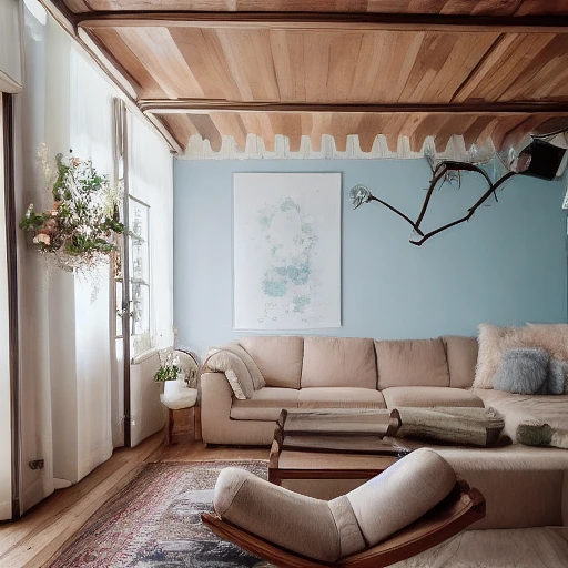 High resolution photography interior design, dreamy sunken living room conversation pit, wooden floor, small windows opening onto the garden, bauhaus furniture and decoration, high ceiling, beige blue salmon pastel palette, interior design magazine, cozy atmosphere; 8k, intricate detail, photorealistic, realistic light, wide angle, kinkfolk photography, A+D architecture