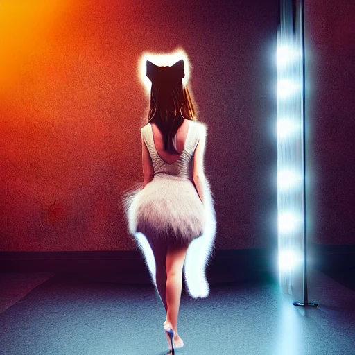 studio photo, Furry girl with perfect body full height cat ears fluffy tail photo realistic ultra-detailed, ultra realistic, ray-tracing, reflections, cinematic light, hdr, 8k