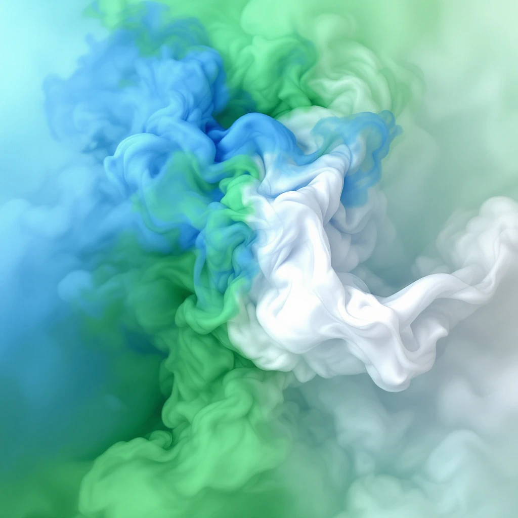 Sierra Leone green , White and blue flag in pastel style paint with smoke effect