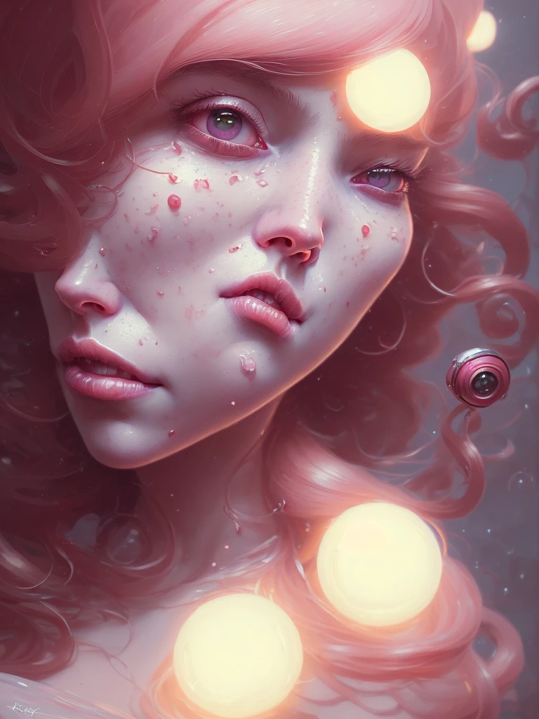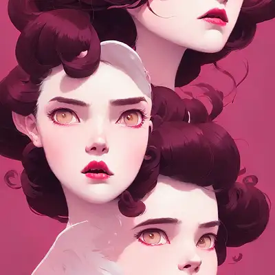 highly detailed portrait of a woman with scarlet lips making a pogchamp face, poggers, photographic realistic background, ringlet hair by atey ghailan, by greg rutkowski, by greg tocchini, by james gilleard, by joe fenton, by kaethe butcher, gradient pink, black, cream and white color scheme, trending in instagram, award winning details