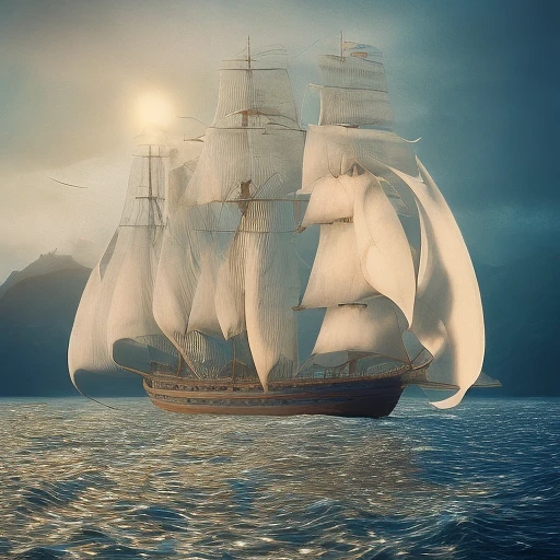 Photo of a ultra realistic sailing ship, dramatic light, pale sunrise, cinematic lighting, battered, low angle, trending on artstation, 4k, hyper realistic, focused, extreme details, unreal engine 5, cinematic, masterpiece, art by studio ghibli, intricate artwork by john william turner