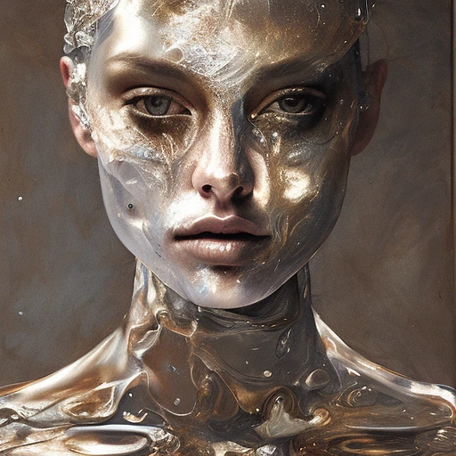 a woman, in the style of made of liquid metal, layered fabrications, nicola samori, brian jungen, exquisite detail, leo putz, light silver and dark brown --ar 51:64 --s 250 --v 6. 0 --style raw