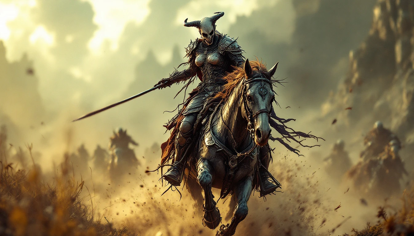 A female undead death knight on horseback charging into battle, trail cam footage, intense coloration fantasy, full body image, RAW photo, (masterpiece) , (extremely intricate:1.3) , (realistic) , cinematic lighting, detailed skin, highly detailed, extremely delicate and beautiful, 8k, high quality, highres, sharp focus, extremely detailed, during the day, extremely detailed eyes and face, masterpiece, cinematic lighting, (high detailed skin:1.2) , 8k uhd, dslr, soft lighting, high quality, film grain, Fujifilm XT3