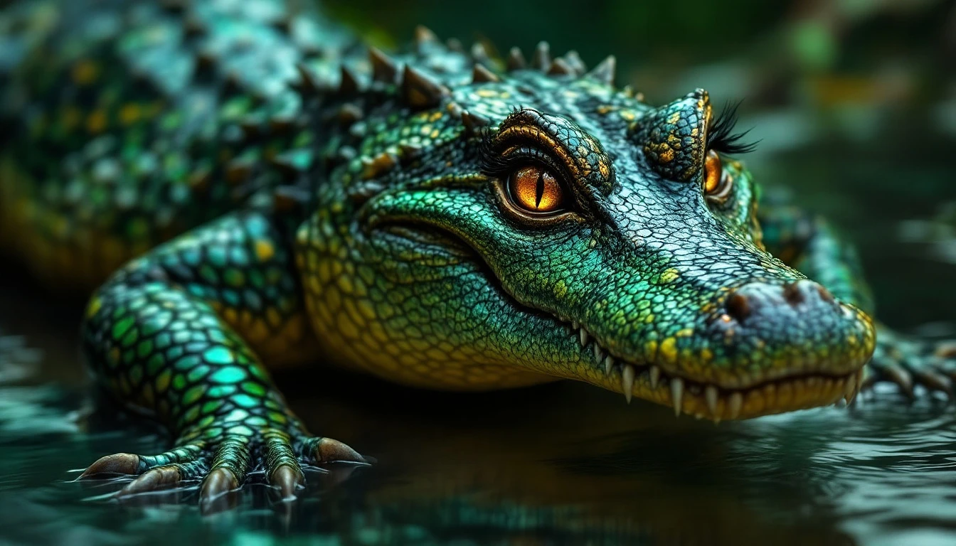 Certainly! Here’s a detailed description of a sexy, curvy, revealing gator hybrid female: Full body shot **The Alluring Gator Hybrid**: This captivating hybrid embodies both the allure of femininity and the wild essence of a gator, creating a striking figure that is both enchanting and powerful. **Physical Appearance**: Her skin is a smooth blend of human tones with iridescent green and teal scales that shimmer subtly in the light. The scales accentuate her curves, particularly along her thighs, hips, and shoulders, adding a touch of exotic flair. She possesses a curvy silhouette that highlights her femininity—bold hips, a defined waist. **Face and Hair**: Her face is a harmonious mix of human beauty and alligator traits, featuring high cheekbones and full lips that exude confidence. Her eyes are large and captivating, with a rich golden or emerald hue, framed by long, dark lashes. These eyes have a hint of reptilian intrigue, perhaps with slit pupils that glimmer with mischief. Her hair flows long and luxurious, perhaps in shades of dark green or deep brown, reminiscent of water reflections, cascading down her back in loose waves or soft curls. She might also have occasional scales near her hairline or along her temples, adding to her hybrid distinctiveness. **Attire**: She wears a revealing, form-fitting outfit that accentuates her curves while merging elements of both human fashion and gator-inspired aesthetics. A sleek, high-cut bikini or a crop top with cut-out sections emphasizes her hourglass figure, showcasing her smooth skin and scales. The colors of her outfit could reflect natural tones—like earthy greens, rich browns, or vibrant blues—while incorporating patterns that mimic gator skin. **Accessories**: To enhance her look, she might wear accessories like jewelry made from natural materials, such as shells, stones, or vines, giving her an organic, wild touch. Perhaps she has a stylish belt adorned with charms or feather-like accents that flow with her movements. **Personality and Aura**: This gator hybrid exudes confidence and charisma, moving with a sultry grace that commands attention. She possesses a playful yet fierce demeanor, drawing people in with her enchanting presence while hinting at a wild side inherent to her gator nature. Her laughter is infectious, and her charm is undeniable, making her both alluring and intriguing. Overall, this curvy, revealing gator hybrid female embodies a captivating blend of sensuality and power, celebrating the beauty of both her human and gator characteristics in an extraordinary way.
