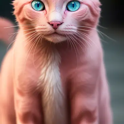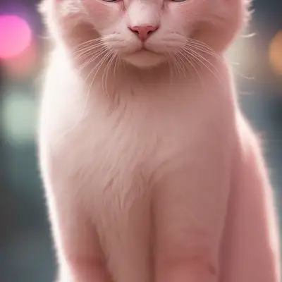 Portrait photo of cute pink cat with fill of lightening colors, blue eyes, light bokeh, intricate, (steel metal (rust) -)+, elegant, sharp focus, i, soft lighting, vibrant colors, masterpiece, (streets) , 8k details, high quality, --ar 9:16