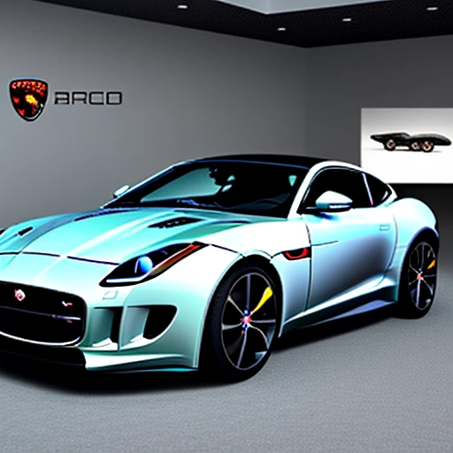 photo of a jaguar f type , black in colour, black wheels, showroom setting, showroom lights, pbr materials, reflections, super realism, 8k, unreal engine 5, super optimization, ultra settings