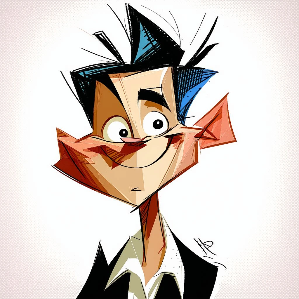 caricature illustration, children's comic book character, hilariously exaggerated features --ar 1:2 --stylize 750