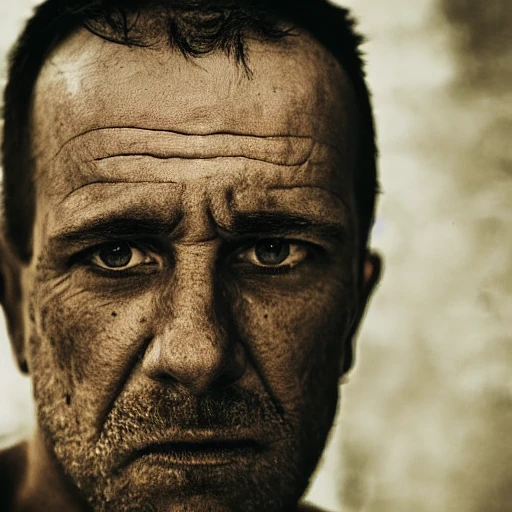 photograph close up portrait 45-year-old tough male prisoner, CLEAN SHAVEN, serious, stoic cinematic 4k epic detailed 4k epic detailed photograph shot on kodak detailed bokeh cinematic hbo dark moody --ar 1:1