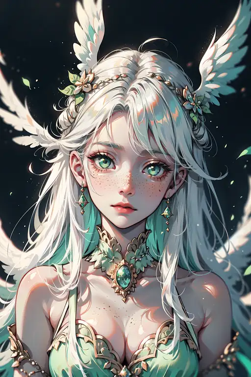 over 2 years ago ((cinematic light)), hyper detail, dramatic light, intricate details, (unreal goddess, 1 girl, ethereal, angel girl with ((white hair)), light green eyes and freckles, with a peaceful expression. perfecteyes, <lora:EMS-658-EMS:0.1>, <lora:EMS-8124-EMS:0.2>, <lora:EMS-7851-EMS:0.5>, <lora:EMS-498-EMS:0.7> saturnho 2 250