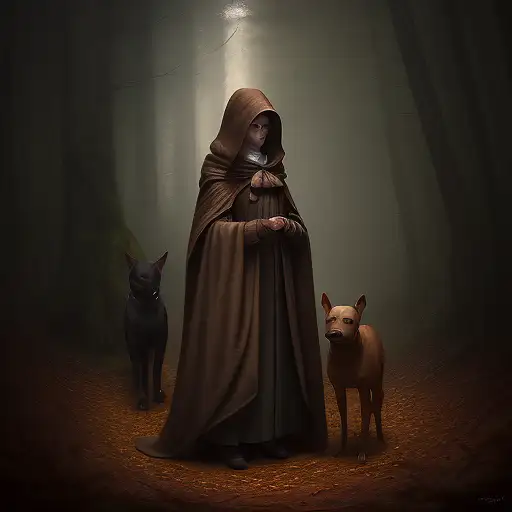 over 1 year ago The Girl in the Brown Cloak with the Amstaff in the Dark Forest detailed digital painting, a photorealistic painting, art photography Steph07 0 80