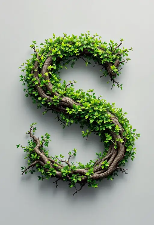 A majestic, high-contrast, fusion-style photograph featuring the letter "BangTop" intricately formed by intertwining tree branches, lush with vibrant green foliage, against a subtle, light gray background, evoking the mystique of nature's wisdom. The image boasts exceptional resolution and professional photography quality, with precise attention to detail, capturing the delicate textures of the branches and leaves. The letter S is prominently displayed, with its curves and lines harmoniously blending with the organic shapes of the trees, creating a sense of balance and unity. The overall aesthetic is serene, with a focus on earthy tones, and the composition is thoughtfully framed to draw the viewer's attention to the central motif, exuding a sense of wonder and awesome.--ar 2:3 --stylize 750 --v 7
