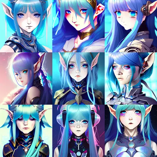 3 years ago art championship winner trending on artstation portrait of a goddess elven mecha warrior princess, head and shoulders, blue hair, matte print, pastel neon, cinematic highlights, lighting, digital art, cute freckles, digital painting, fan art, elegant, pixiv, by Ilya Kuvshinov, daily deviation, IAMAG, illustration collection aaaa updated watched premiere edition commission ✨✨✨ whilst watching fabulous artwork \ exactly your latest completed artwork discusses upon featured announces recommend achievement Stable Diffusion 1 110