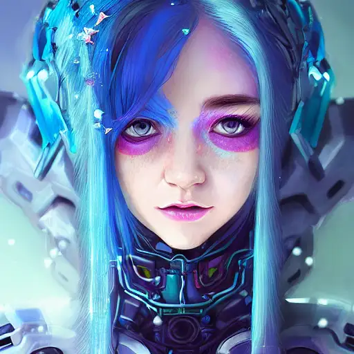 3 years ago portrait of a goddess elven mecha warrior princess, head and shoulders, blue hair, matte print, pastel pink neon, cinematic highlights, lighting, digital art, cute freckles, digital painting, fan art, elegant, pixiv, by Ilya Kuvshinov, daily deviation, IAMAG, illustration collection aaaa updated watched premiere edition commission ✨✨✨ whilst watching fabulous artwork \ exactly your latest completed artwork discusses upon featured announces recommend achievement Stable Diffusion 0 92
